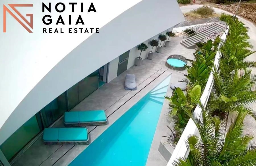 In the prestigious area of Panorama in Voula, a stunning and modernly designed furnished detached house of 360 sq.m. is available for sale. Built in 2020 on a 460 sq.m. plot, the property features a private swimming pool and jacuzzi. Spread over three levels, it offers a beautifully designed living room with a fireplace, a fully equipped kitchen, two guest WCs, and a total of three bedrooms, two of them master. The property is equipped with autonomous underfloor heating, air conditioning, two parking spaces, and a playroom. This luxurious, airy, and light-filled residence boasts a unique panoramic sea view and stands out for its contemporary architecture and elegant design. Price: 3.500.000€. ΝΟΤΙΑ GΑΙΑ, Tel: +302109628771, email: info@notiagaia.gr, Website: https://www.notiagaia.gr
