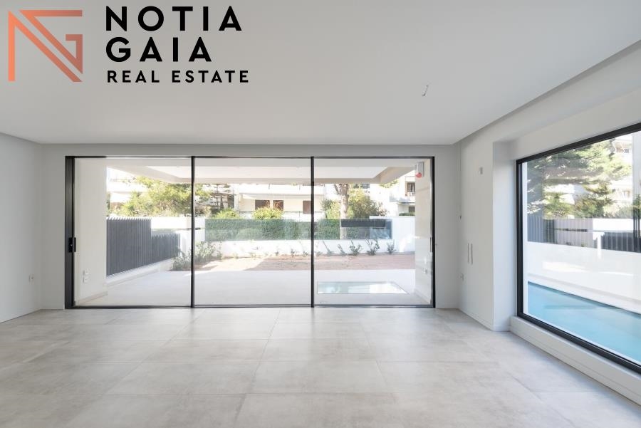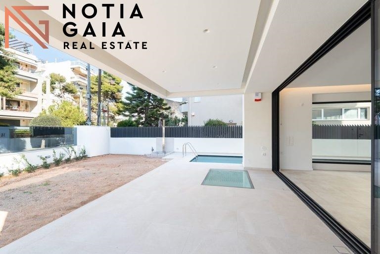 In an excellent location in lower Glyfada, a luxurious maisonette, 174 sq.m., with a private pool and garden is available for sale. It is divided into 2 levels with an internal staircase. Upon entering, on the ground floor (103 sq.m. )we are greeted by a bright and spacious living room with fireplace, in an open space with the kitchen, while on the same level we find 2 bedrooms (2 Master) and 1 WC. Going down, in the basement (70,50 sq.m.) there is a large living room/playroom area, with 1 more bedroom and bathroom. The heating is autonomous - heat pump and it has air conditioning and 1 parking space. It is bright and is in an excellent location. Price: 1.390.000€. ΝΟΤΙΑ GΑΙΑ, Tel: +302109628771, email: info@notiagaia.gr, Website: https://www.notiagaia.gr